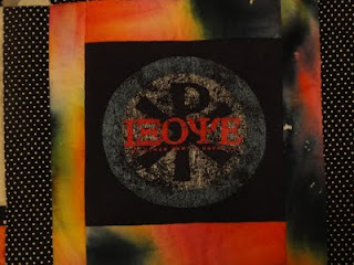 Odyssey of the Mind was a huge part of Hannah's life from third through fifth grade. Here's an assortment of some of her OM t-shirts, along with her Science Club t-shirt. I love how she put these together into one block, and then made the cross pieces out of another of Hannah's shirts.